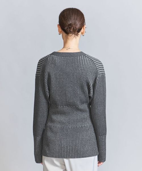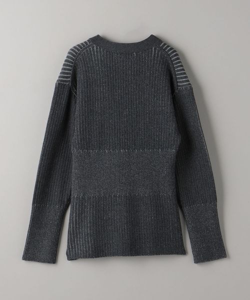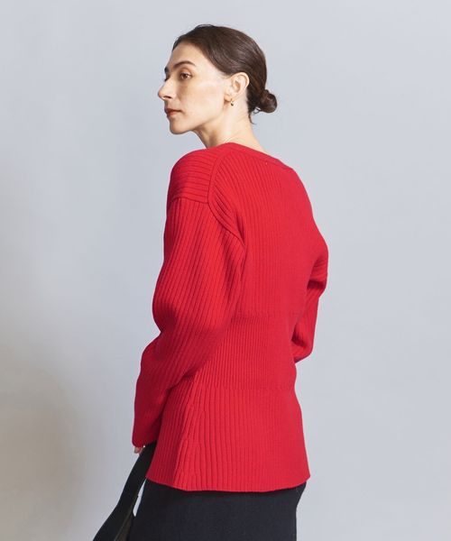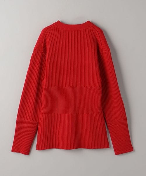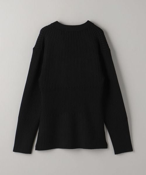 すっきりとしたVネックに、袖先とウエスト部分だけリブの幅を変えているのが特徴です。