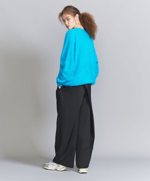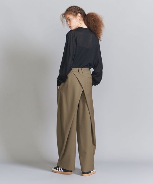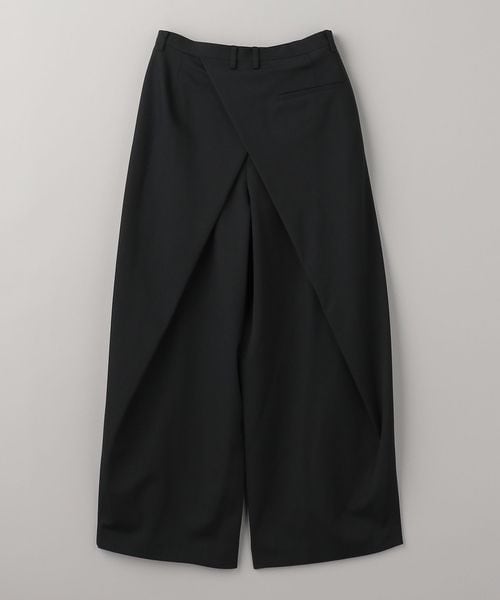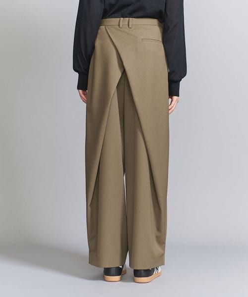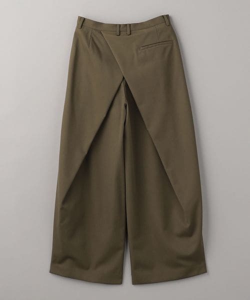 こちらは、バックスタイルの大胆な分量感で入れたラップディテールが特徴のワイドパンツ。