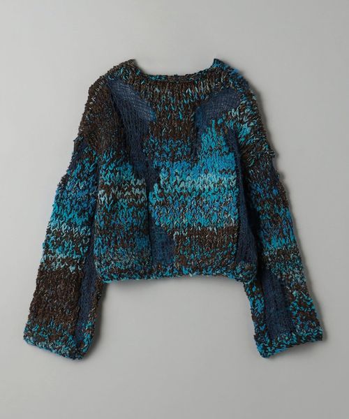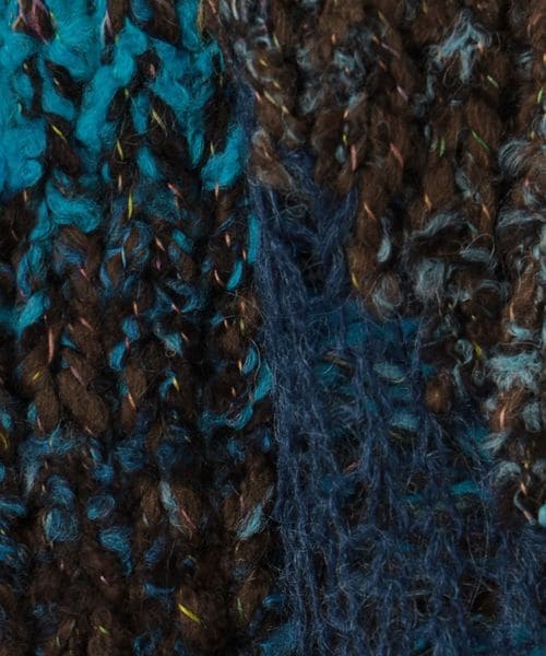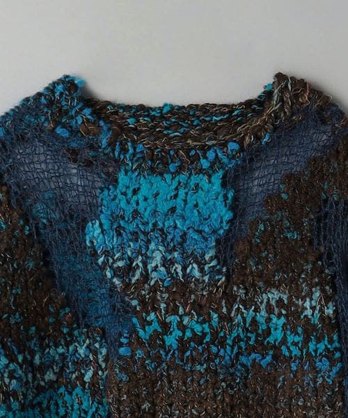 独特のカラーリングと細番手の単色カラーのコントラストが絶妙な、一枚で個性の引き立つアイテム。