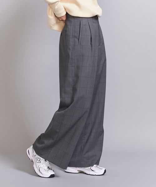 チェック タックワイドパンツ