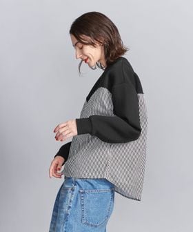 カットソーと布帛をドッキングさせた異素材コンビプルオーバー。