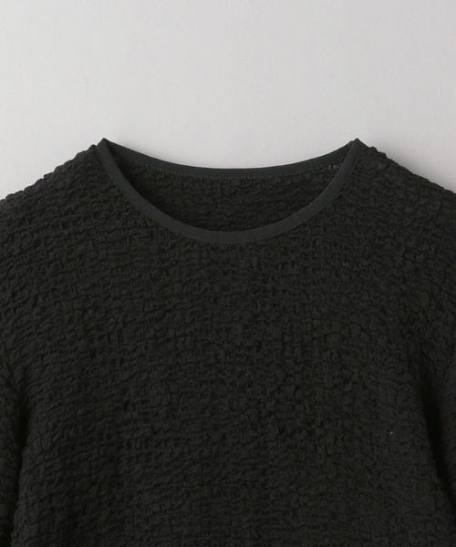 シャーリング糸を這わせたポコポコとした生地が愛らしい、ブラウスライクに仕上げたカットソープルオーバー。