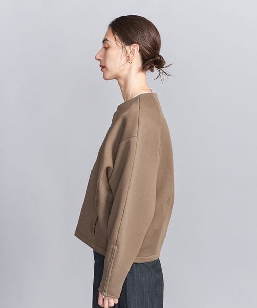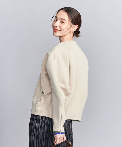 シンプルなルックスながら袖口にはアレンジ可能なファスナーを付け、シルエットの変化もお楽しみいただける一着に仕上げました。