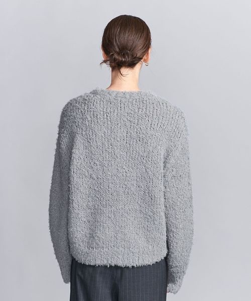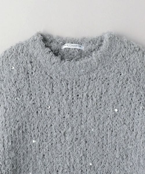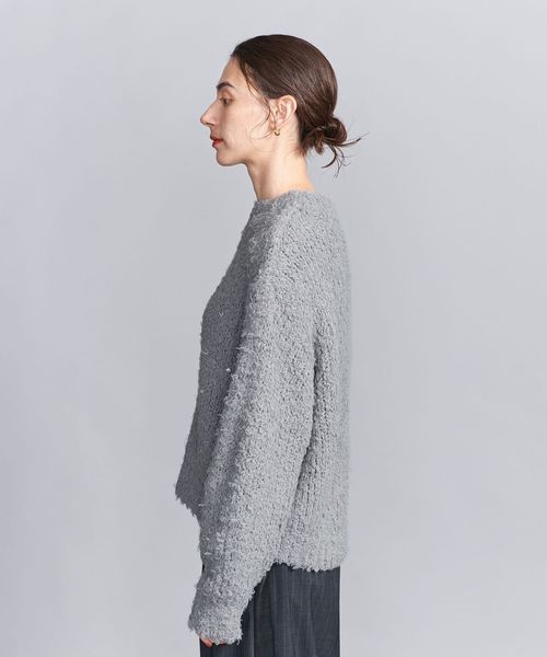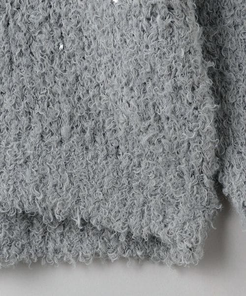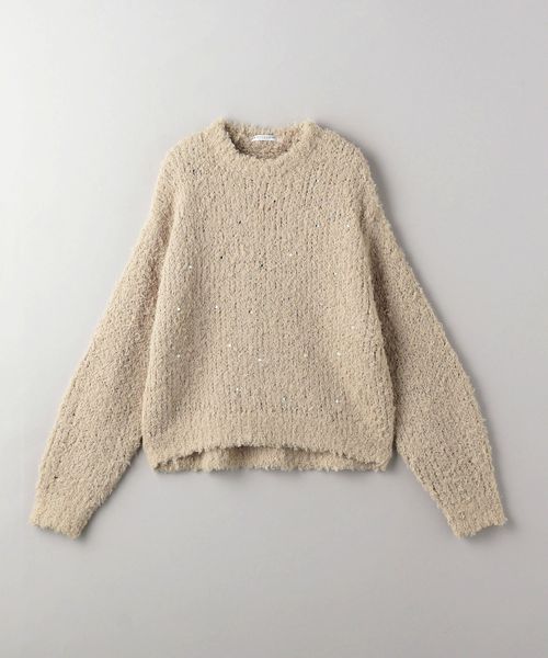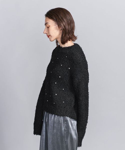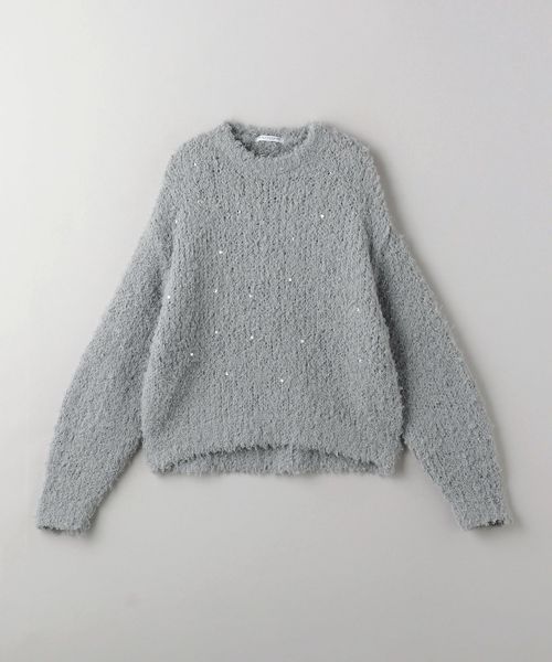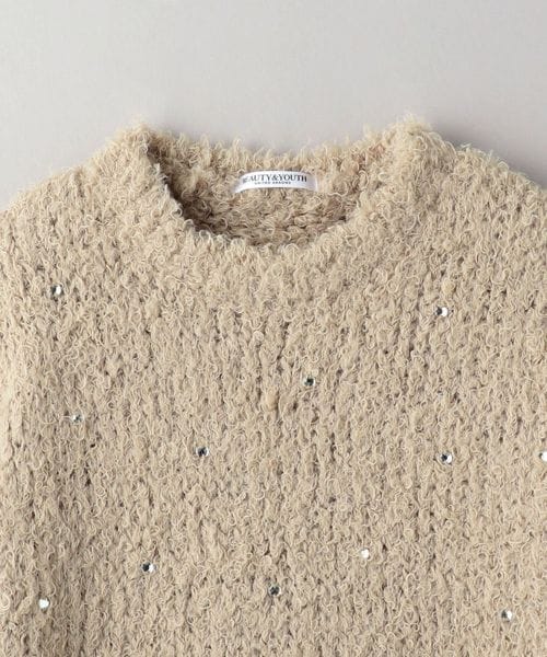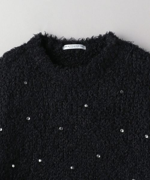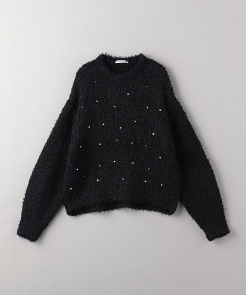 ふわふわとしたフェザーヤーンのニットにビジューを散りばめた着映えアイテム。