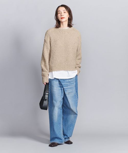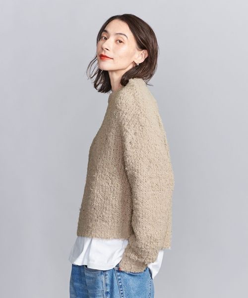 毛足感のある糸と組み合わせることでビジューが馴染み、さり気ないアクセントを添えてくれます。