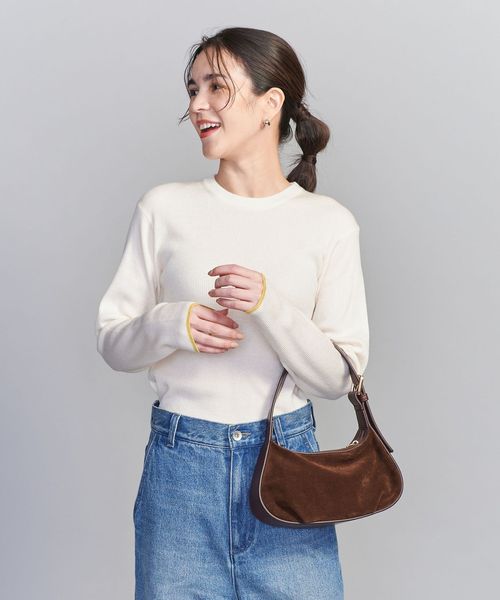 ややコンパクトなサイズ感のクルーネックニットプルオーバー。