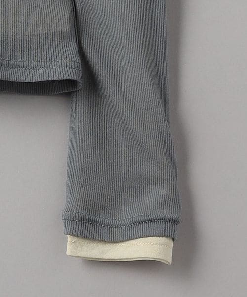 インナーを天竺・アウターをリブで素材を変えた、レイヤードロングスリーブTシャツ。