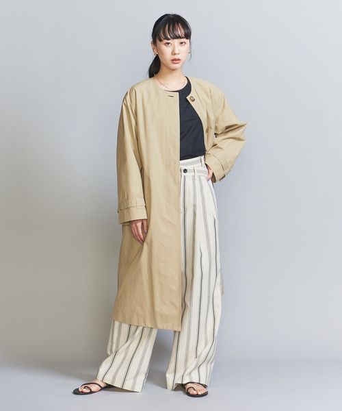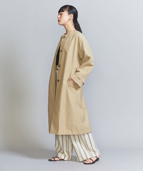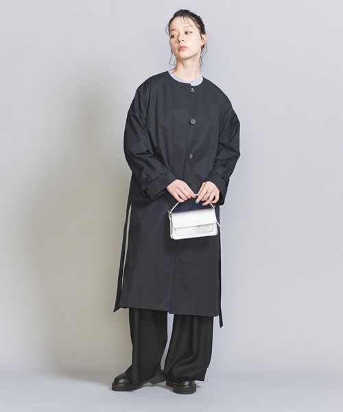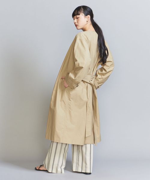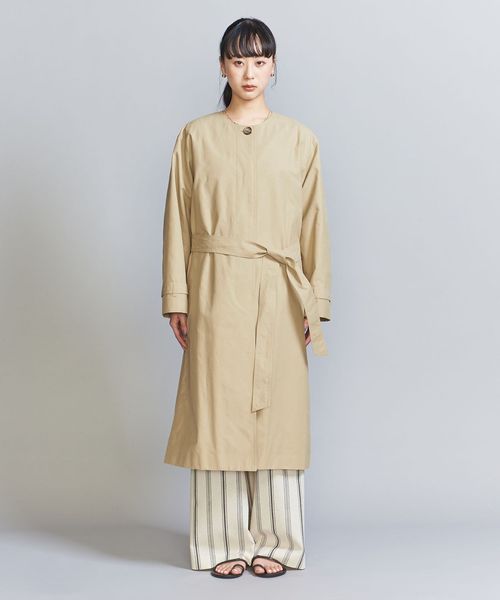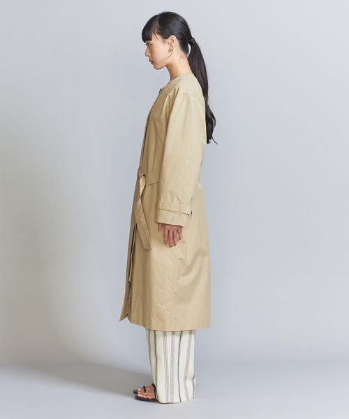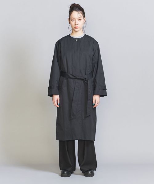 コットンナイロン ノーカラー ベルトコート ―撥水加工―