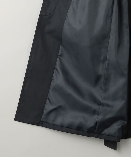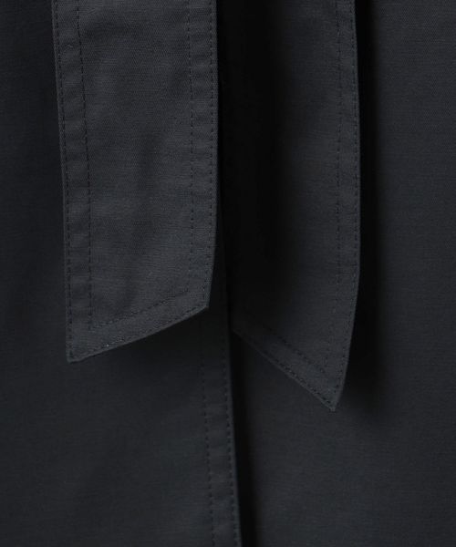 比翼仕立てのすっきりとした上品なルックスに、ウエストと袖口の共ベルトでアクセントをプラス。