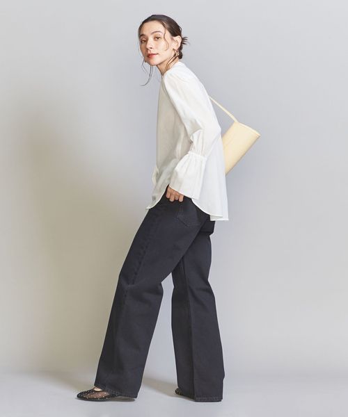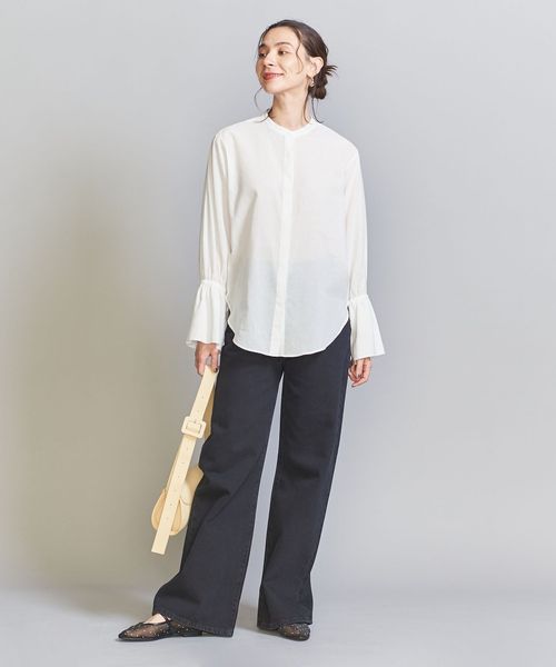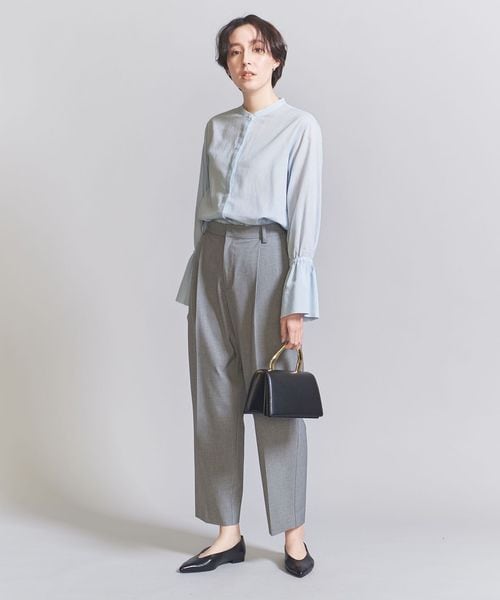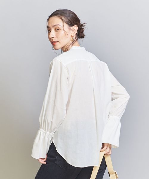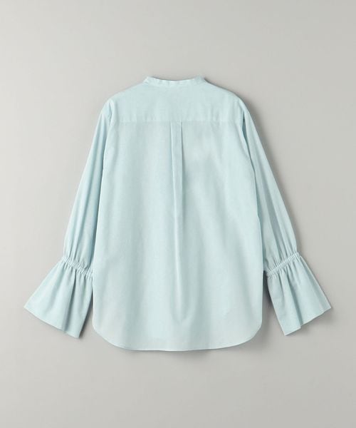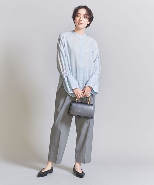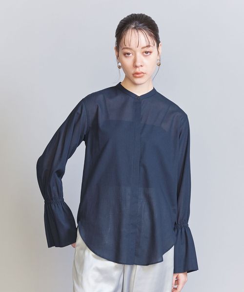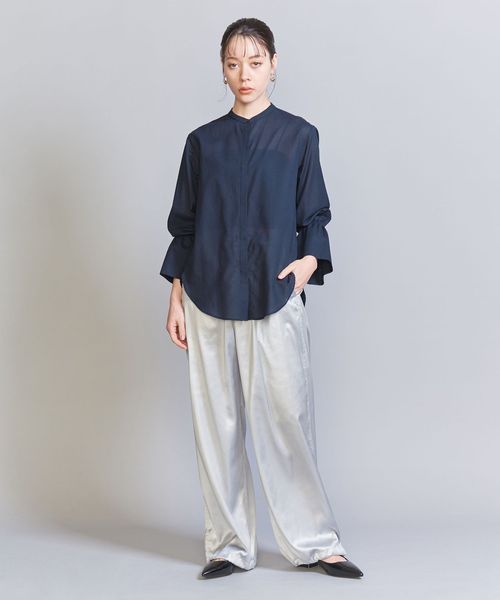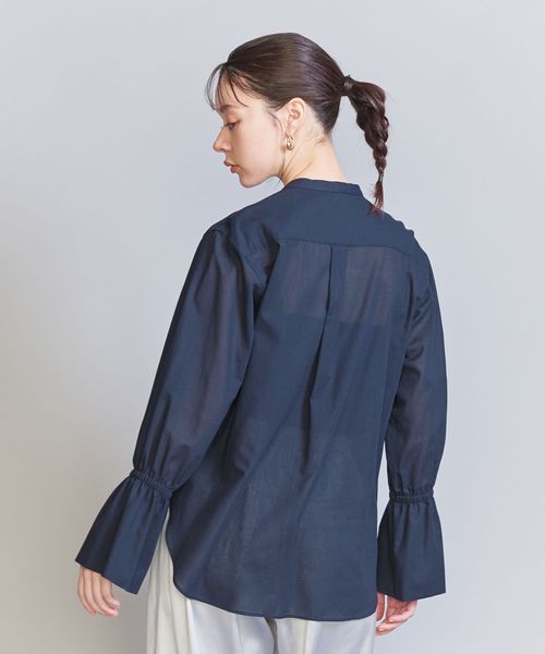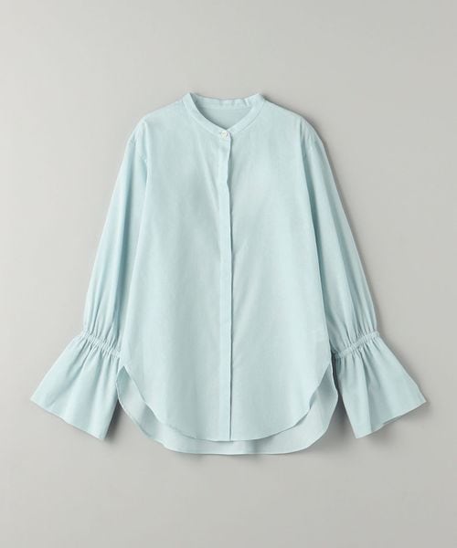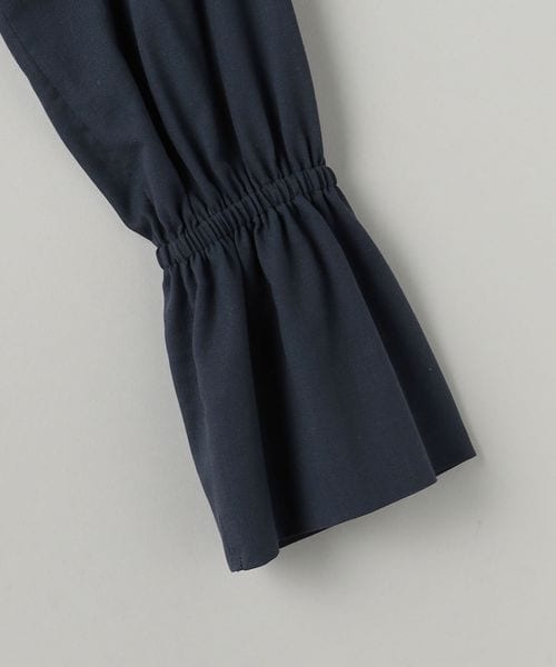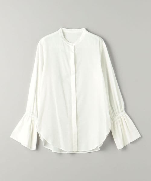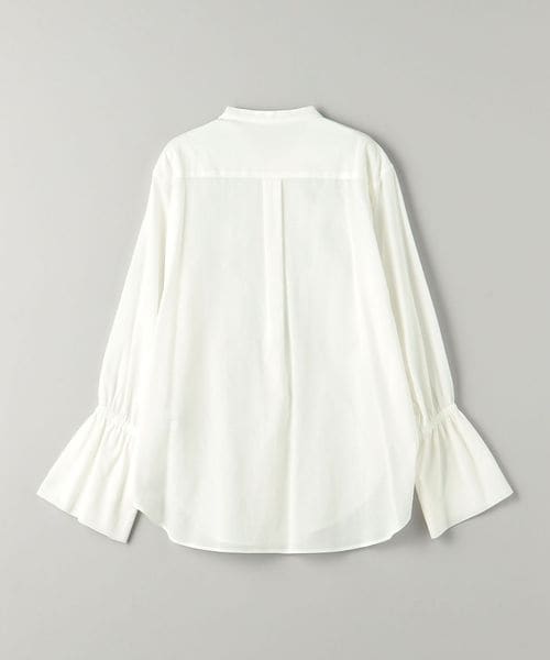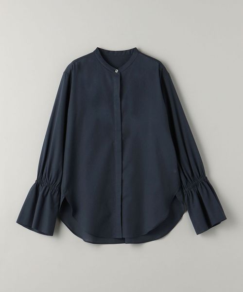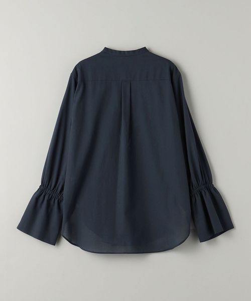 ギャザーでボリュームを持たせた袖口のディテールが印象的なブラウスライクなシャツ。