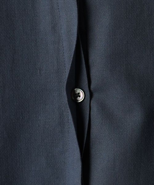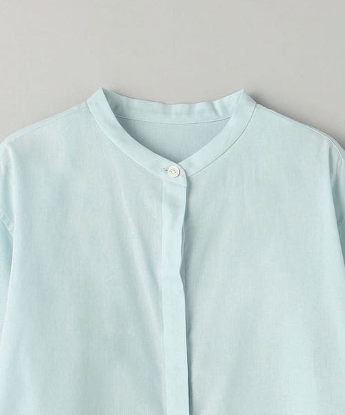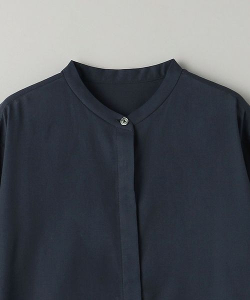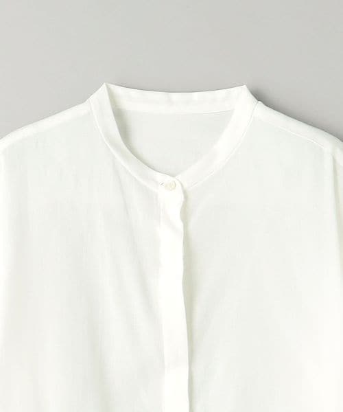 すっきりとしたバンドカラーに、ジャケットのインナーに合わせた際にもさりげないポイントになるよう小さなボタンでアクセントをプラス。