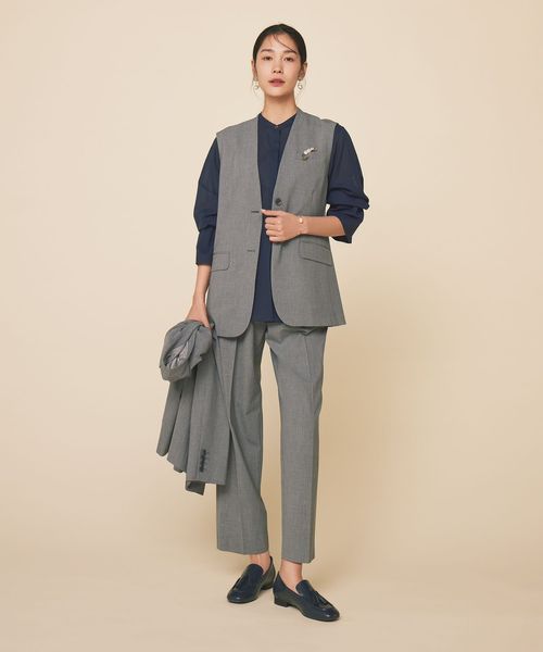 袖のディテールを活かし、ジレに合わせたトレンド感のあるレイヤードスタイルがおすすめ。