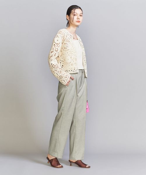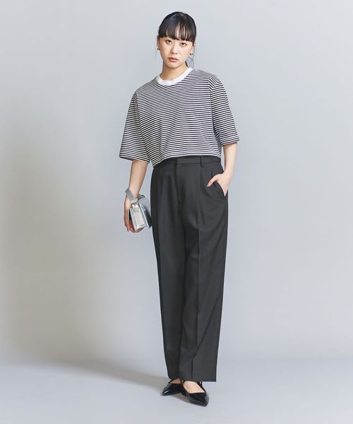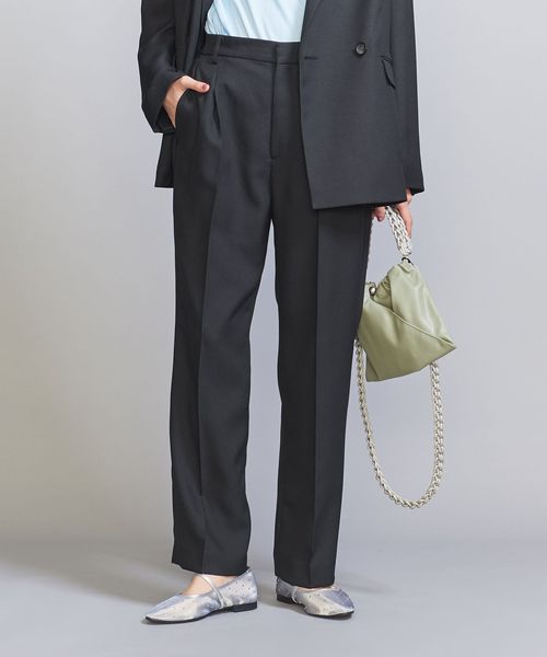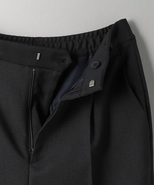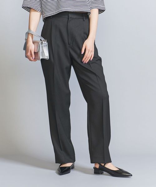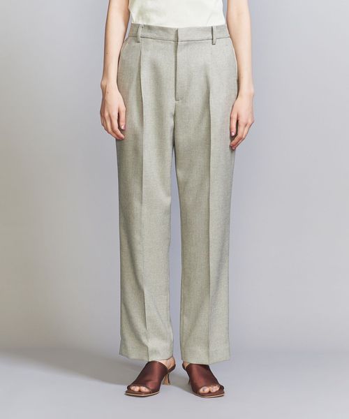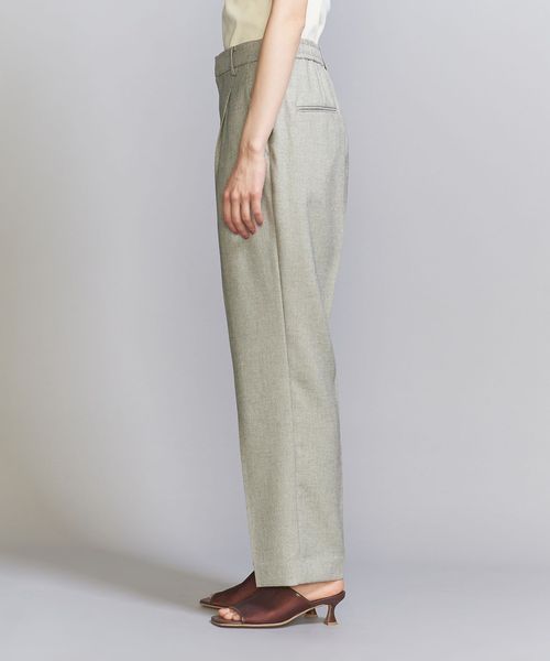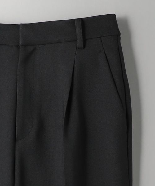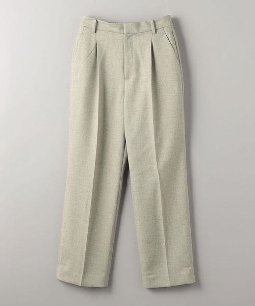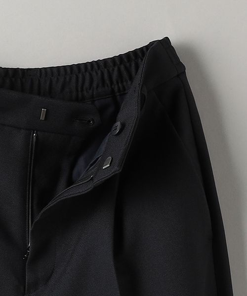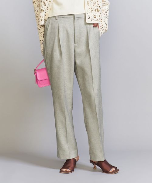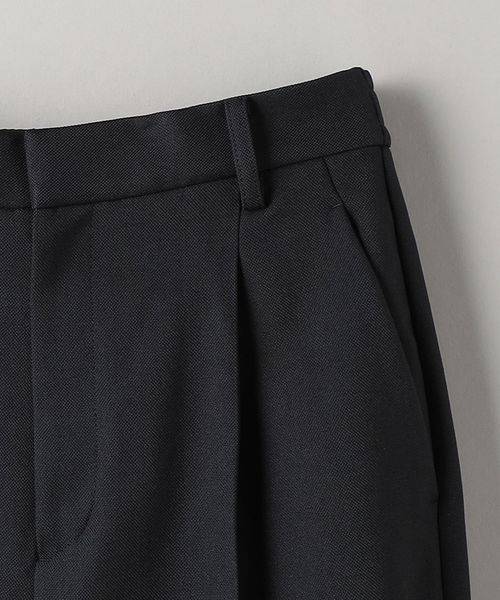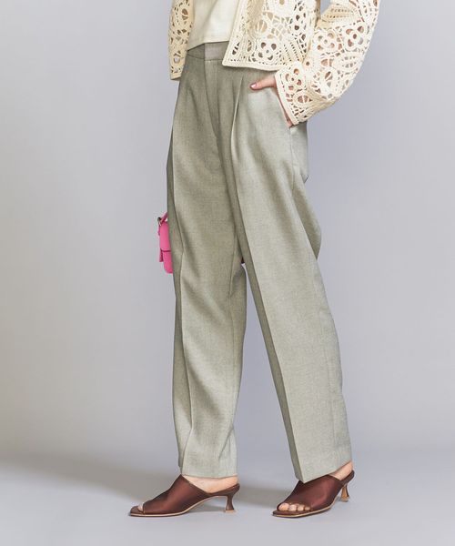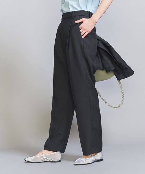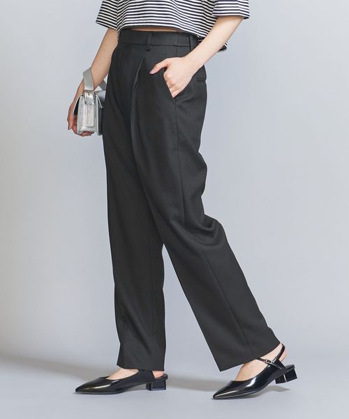 フロントに施した1タックと、かかとが覗く半端丈が、気張り過ぎない適度な抜け感を演出。