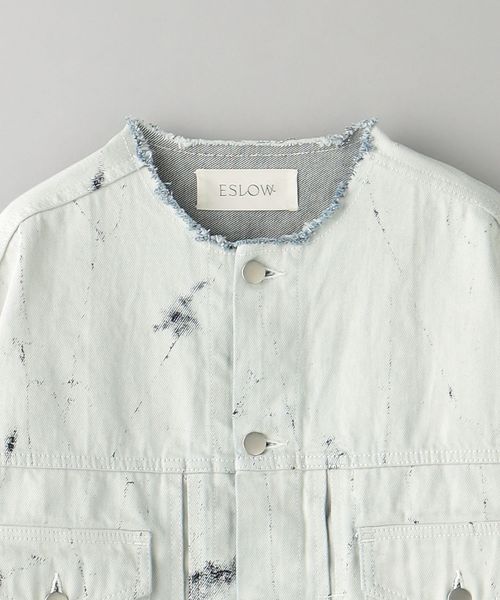 <ESLOW>ブリーチデニム ノーカラージャケット