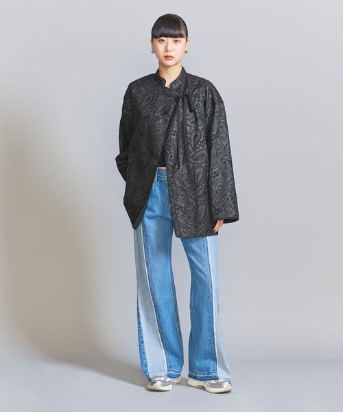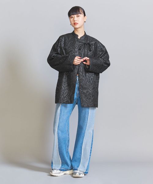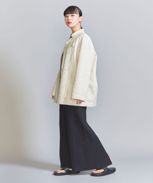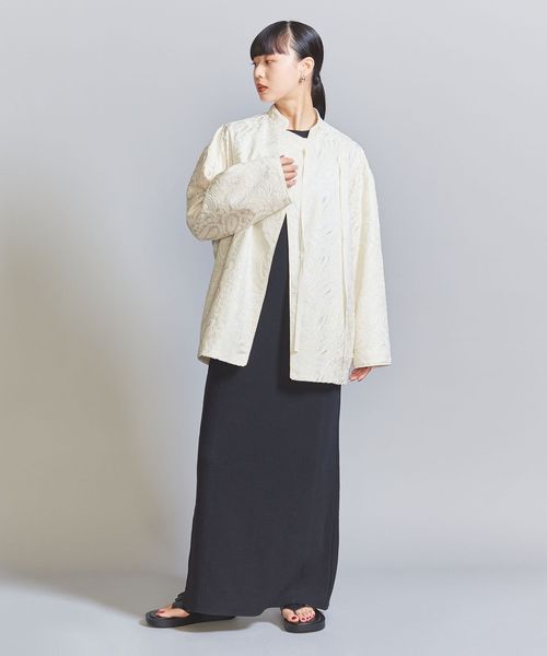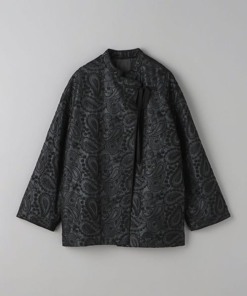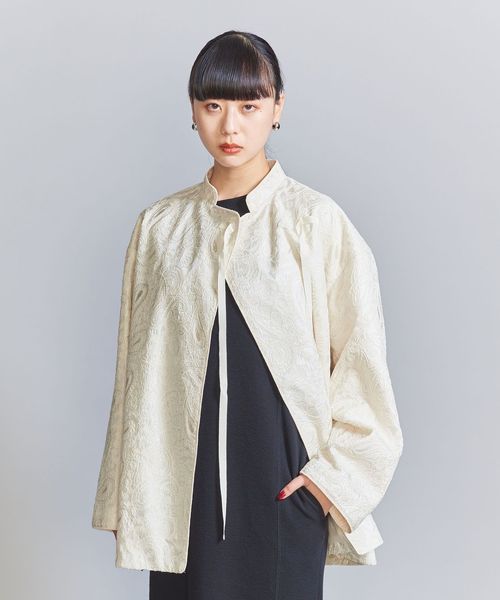 こちらは、スタンドカラーにアシンメトリーなフロント合わせで、チャイナジャケットのような雰囲気に仕上げたジャケット。
