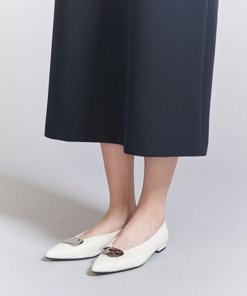 足元はフラットからヒールのパンプスまで、合わせるアイテムで印象が変わります。