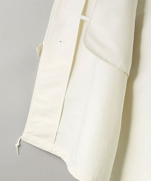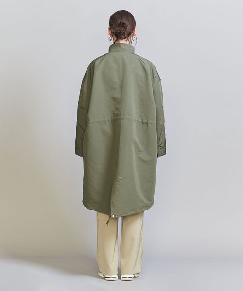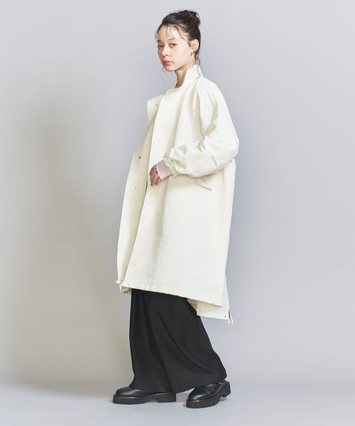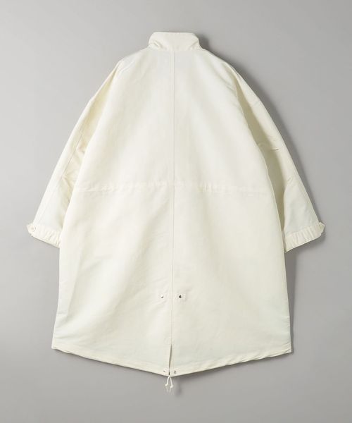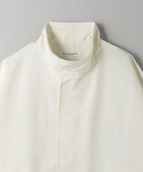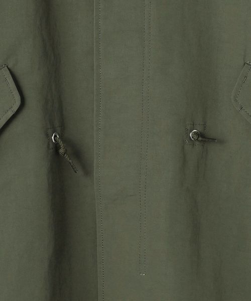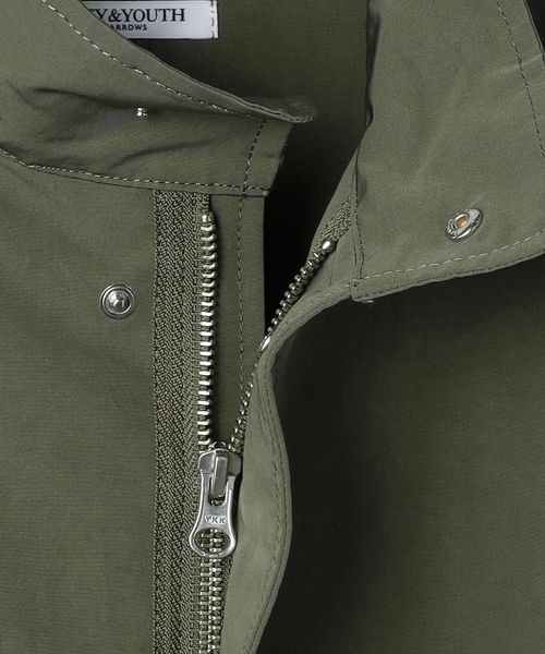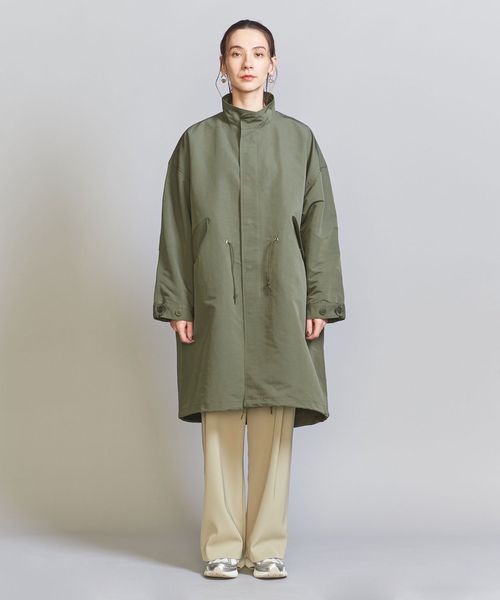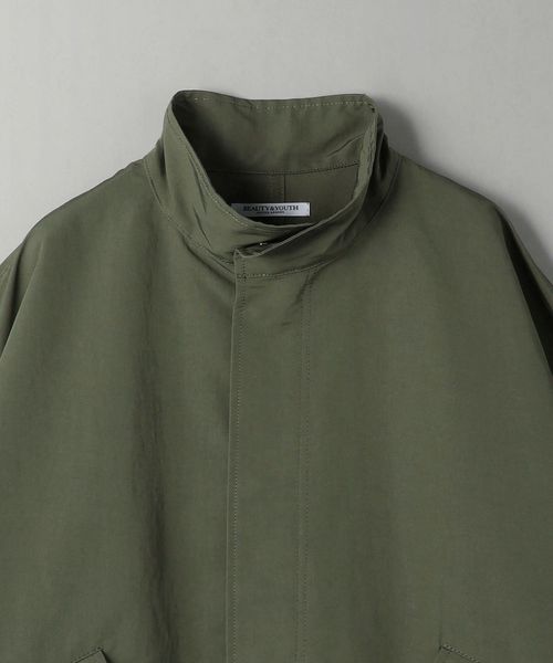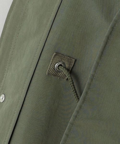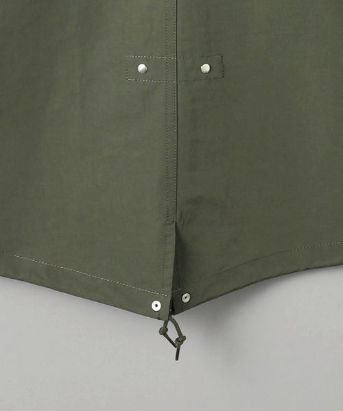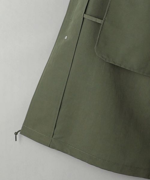 サイドのフラップポケットや裾のドローコードなど、ミリタリーディテールを随所に取り入れつつ、スタンドカラーですっきりと仕上げたアーバンムード溢れる一着。