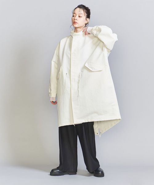 メンズサイズをベースにしたオーバーシルエットで、トレンドフォルムに仕上げたモッズコート。