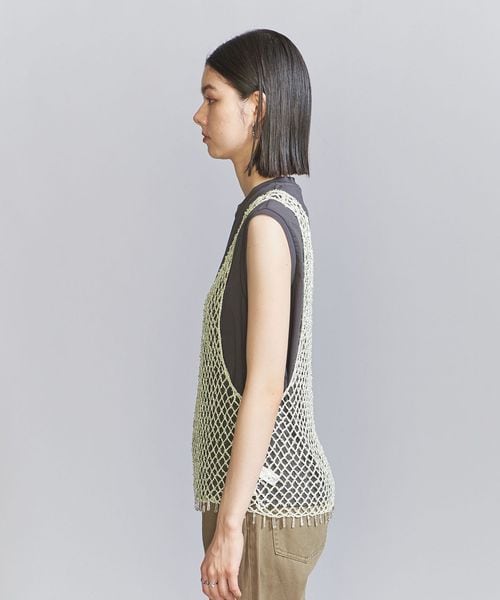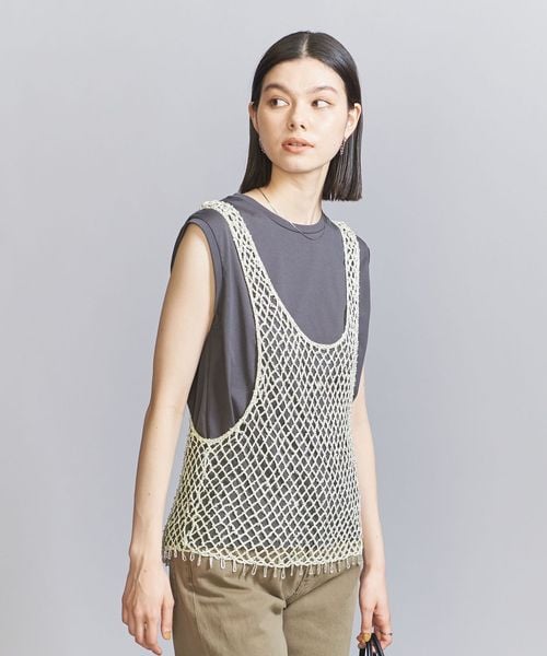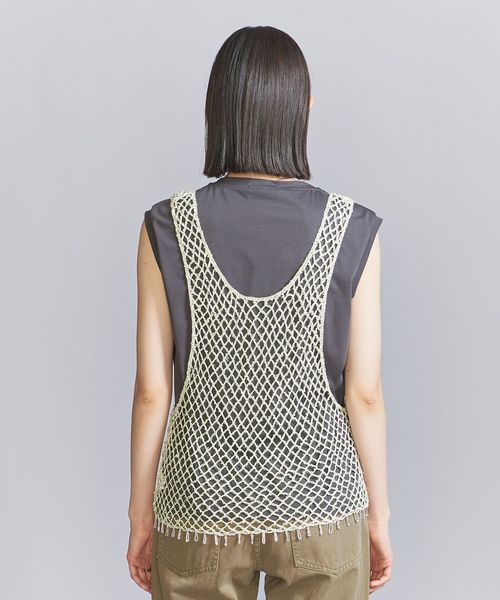 粗目の編地が存在感を放つメッシュタンクトップ。