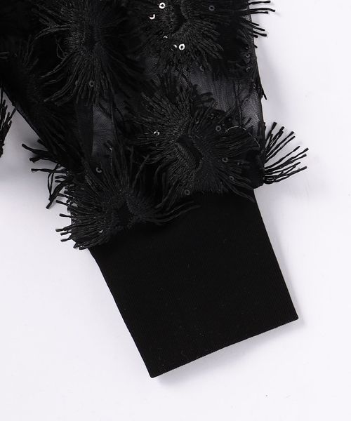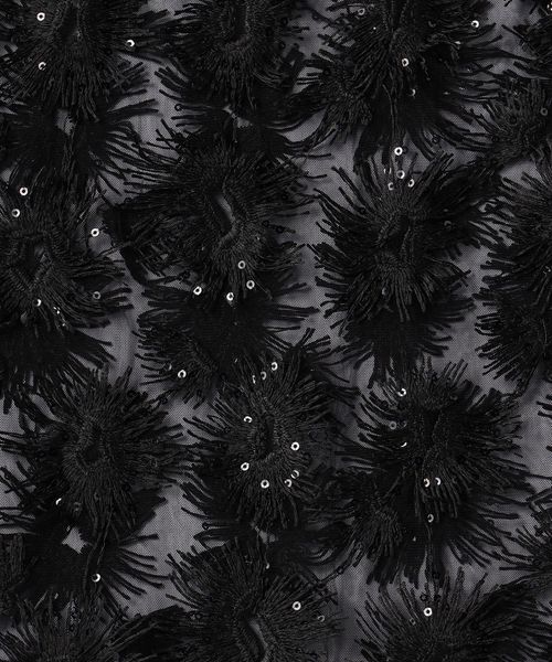 チュール地にフラワーモチーフの刺繍を施した、特徴のある素材。
