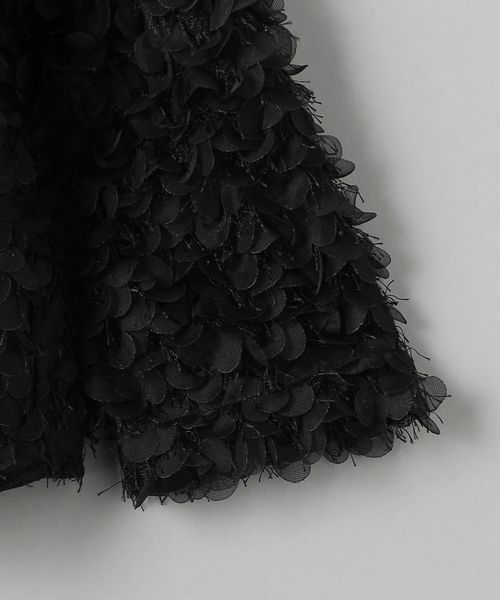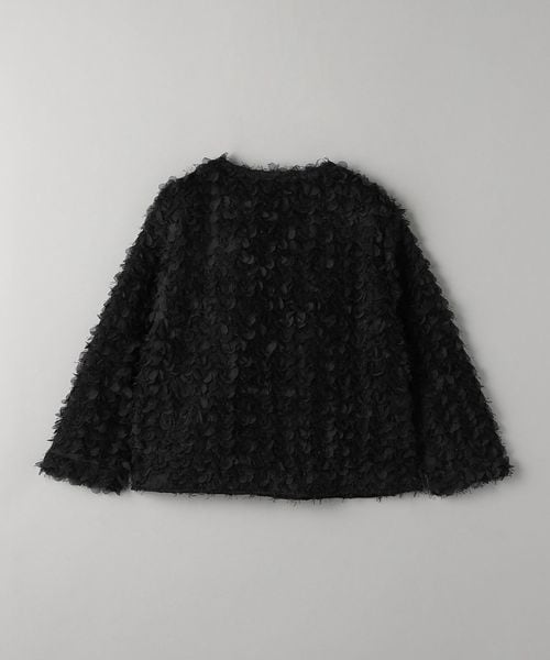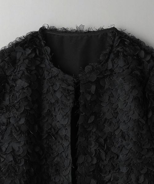 petal=花びらという言葉にぴったりなモチーフをあしらった、表面感のある生地が特徴のノーカラージャケット。