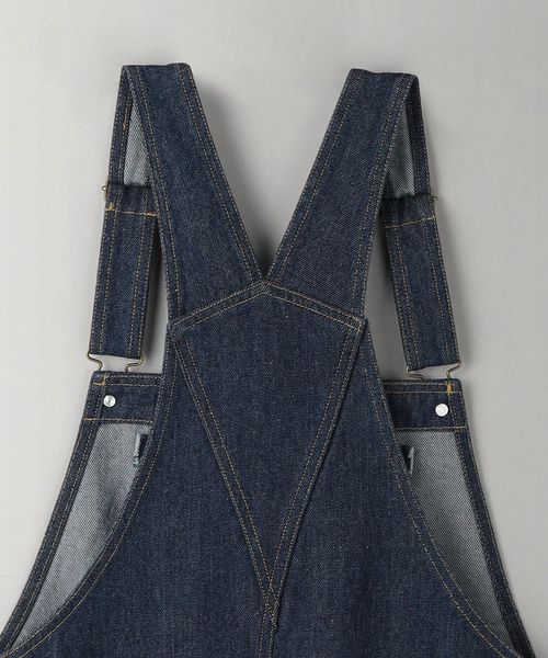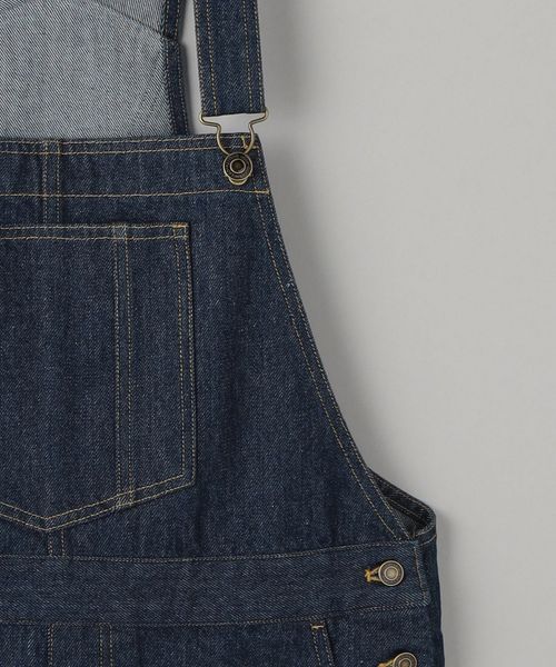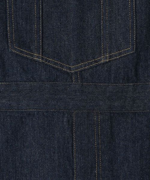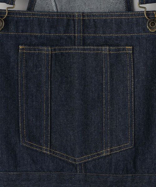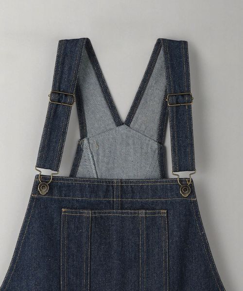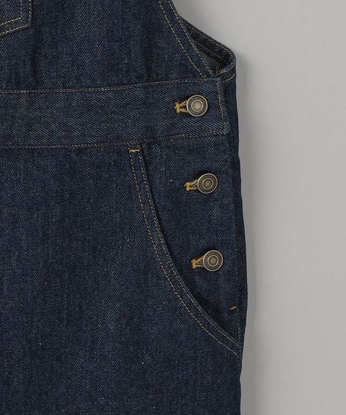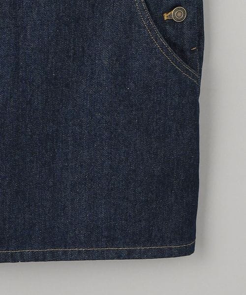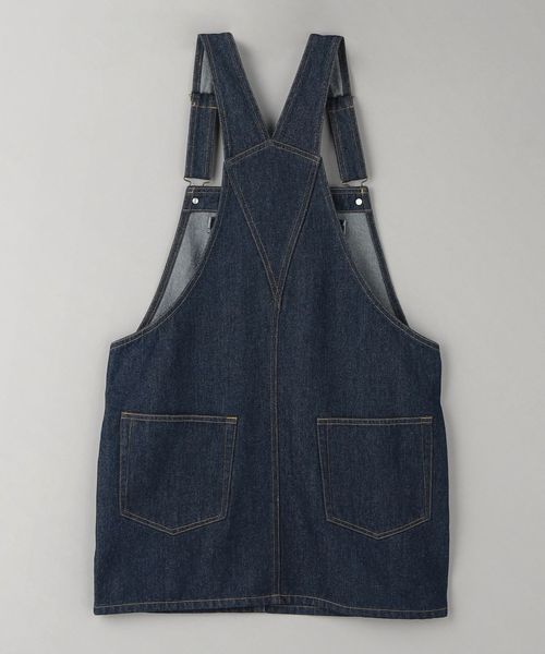 クリーンな印象のデニム素材を使用した、ミニ丈のジャンパースカート。