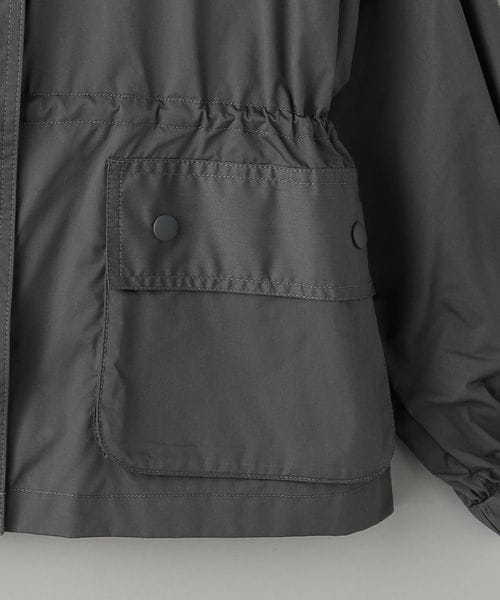 ジップやポケットのドットボタンがさりげなくアクセントを添えています。