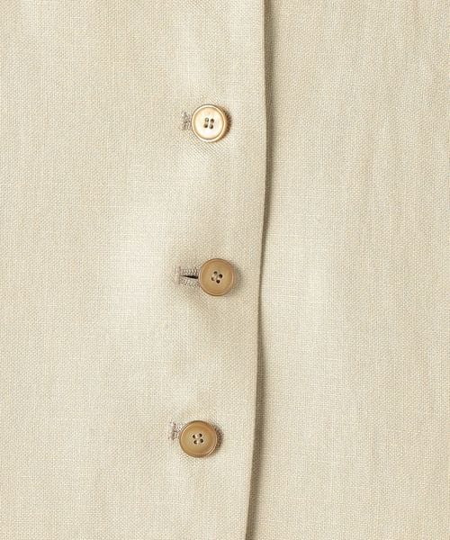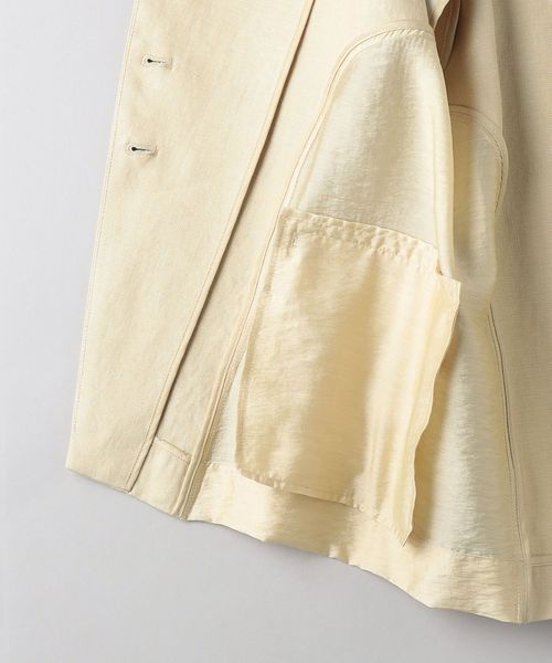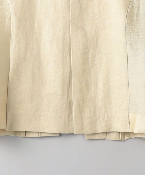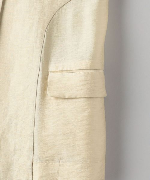 ハリとしなやかさを感じる微光沢の生地と麻の組み合わせが清涼感を感じる一着。