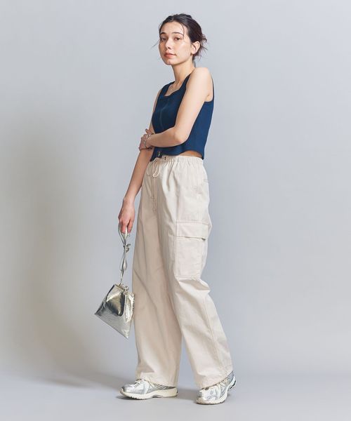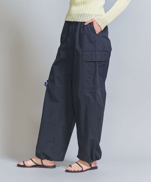 ゆとりのあるシルエットにウエストドローストタイプのカーゴパンツ。