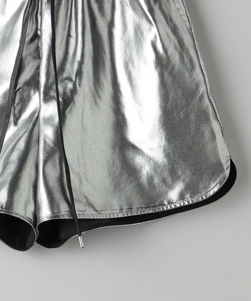 シルクタッチの柔らかなツイル生地に箔加工を施したオリジナル生地で作製したショートパンツ。