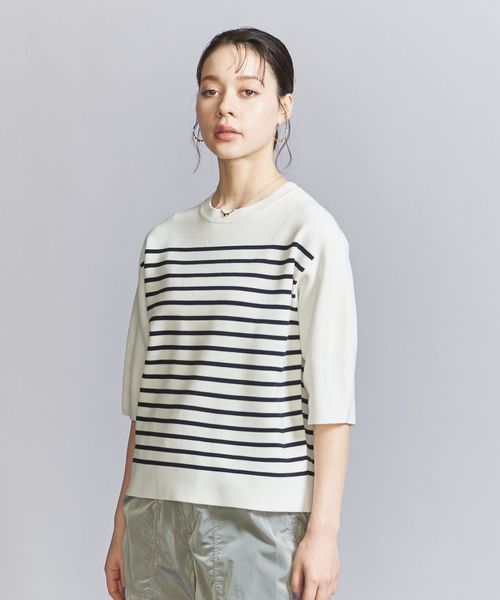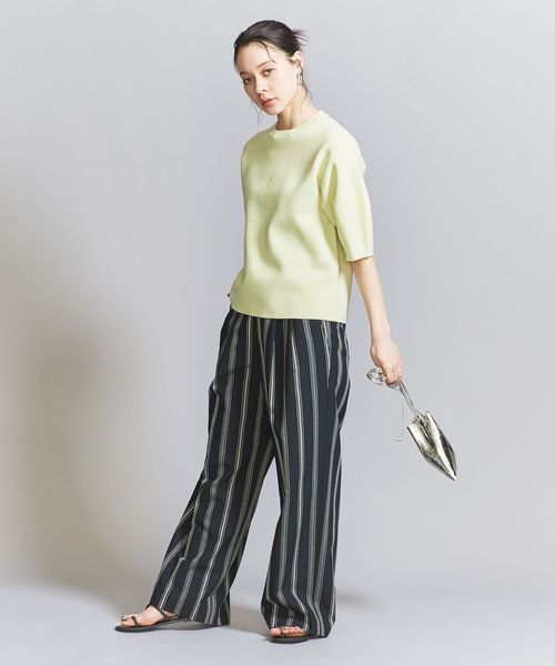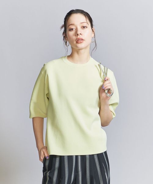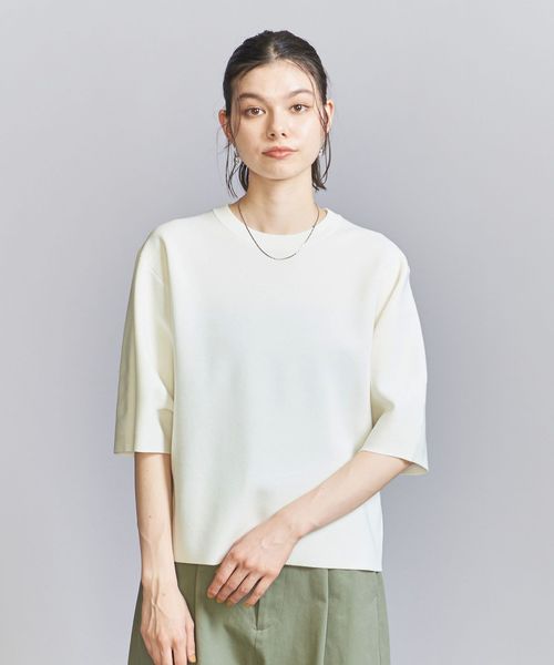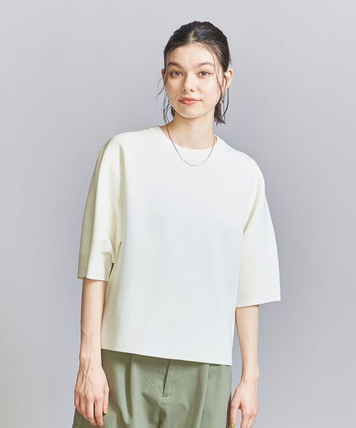Tシャツライクに着こなせるシンプルなデザインは、デイリーからオフィスカジュアルまで幅広く活躍。