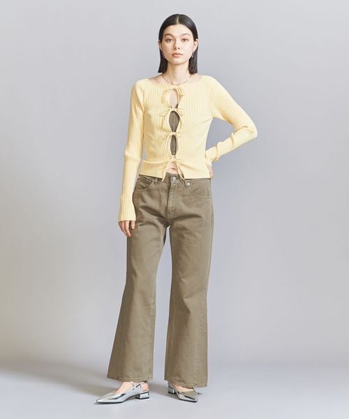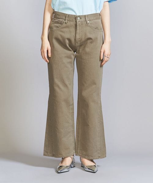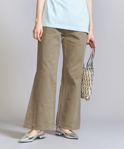 ヒザをしぼりすぎず、裾に向けてややフレアさせた美脚シルエットが特徴です。