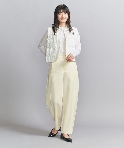 ややボリュームのある旬のカーブパンツと合わせたコーデもおすすめです。