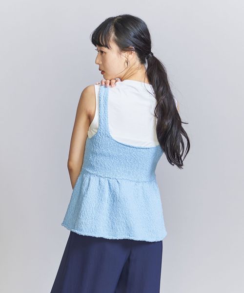 切り替えをやや上にしたガーリーなムードのビスチェ風ベスト。