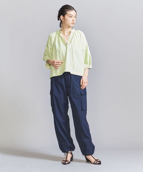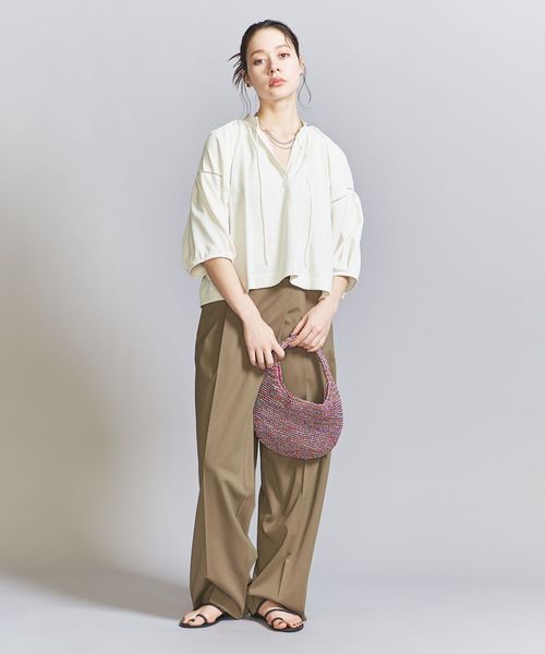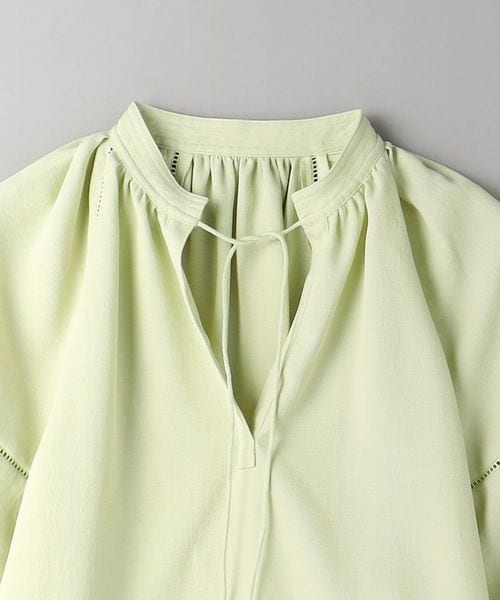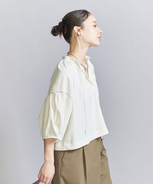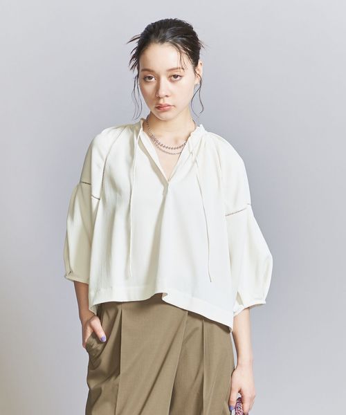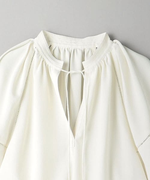 袖繋ぎ部分のはしごレースがさりげなくフェミニンなアクセントを添えています。
