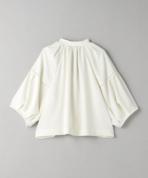 タック&ギャザーでボリュームを出した身頃と、袖には切り替えを入れ丸みのあるフォルムを演出。