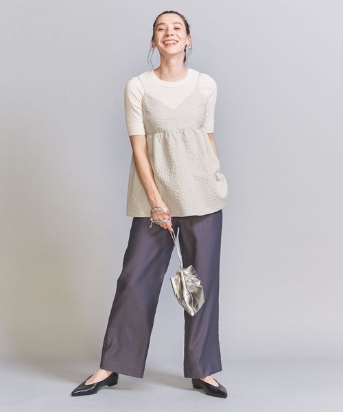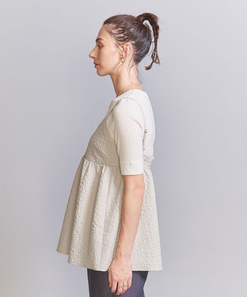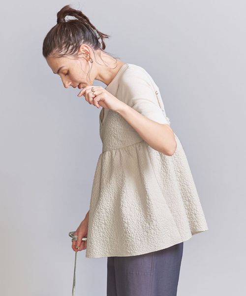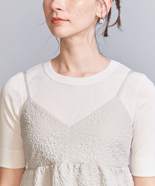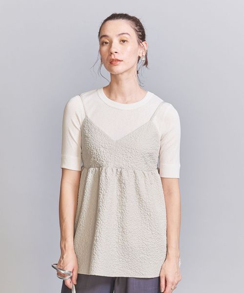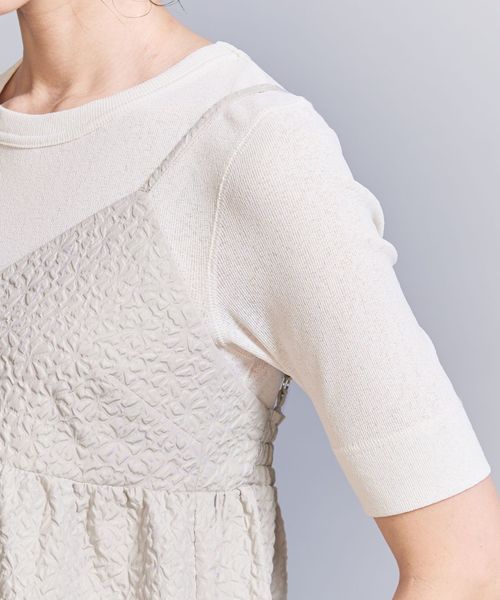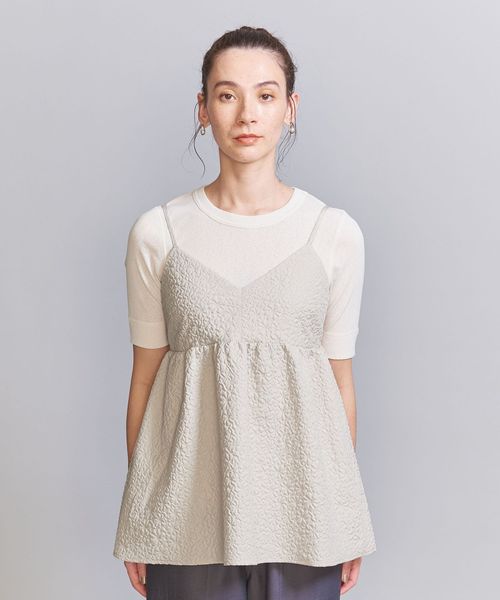 張りのある生地に凹凸で小花柄を施した、表面感が特徴的なキャミソールチュニック。