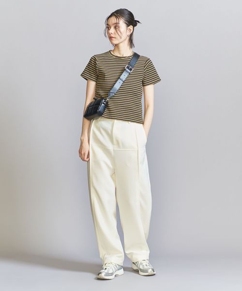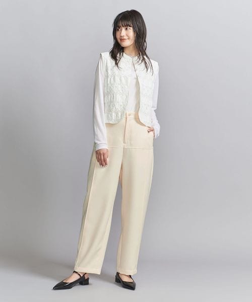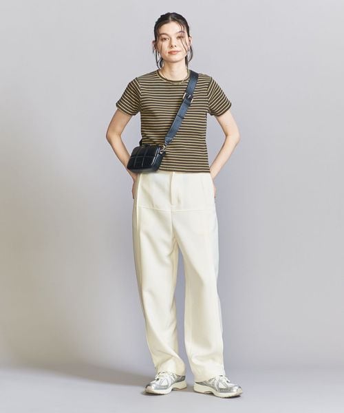 パンツのシルエットを際立たせるショート丈トップスとの合わせもぜひ。