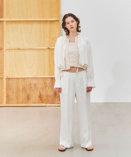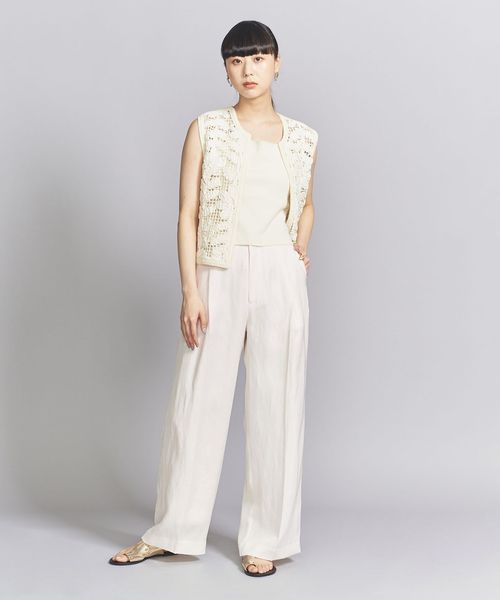 麻ヴィスコース ウエストカットオフ パンツ/ライナー