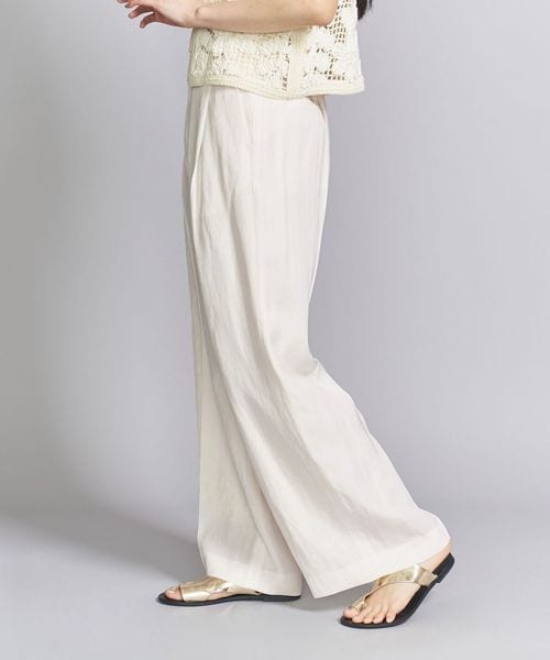 こちらは、レーヨンの光沢に麻のカジュアル感がプラスされたツイル組織の素材を使ったパンツ。