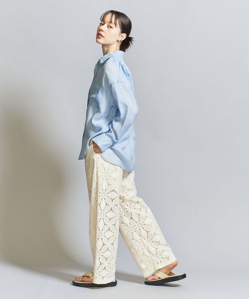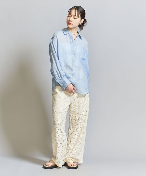 ゆったりとしたサイズバランスと、涼やかな風合いから生まれるナチュラルな雰囲気が、季節感のある着こなしを後押しします。
