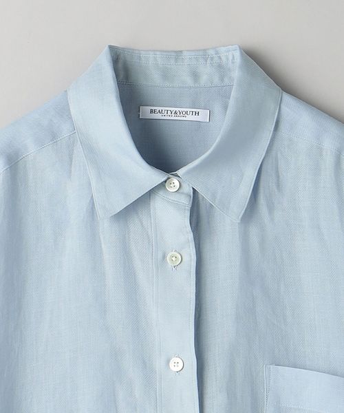 麻100%素材を使用したレギュラーカラーシャツ。