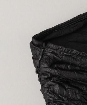 光沢のある素材を使用した華やかな印象のチューブ型ワンピース。
