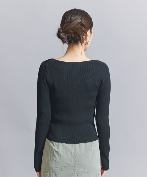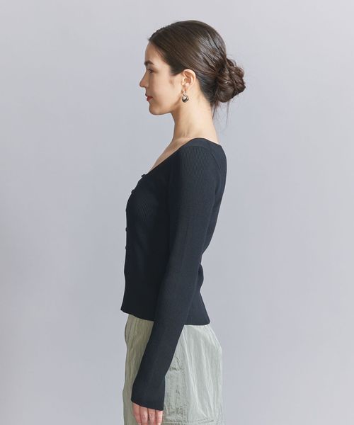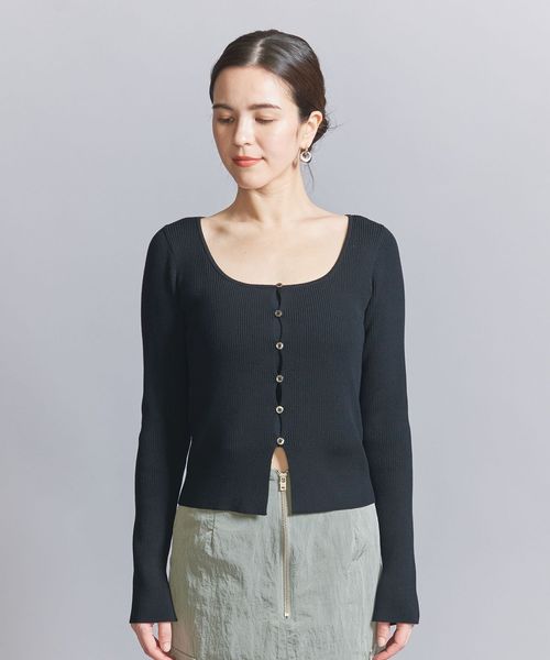 スクエアネック リブニット カーディガン ―ウォッシャブル―
