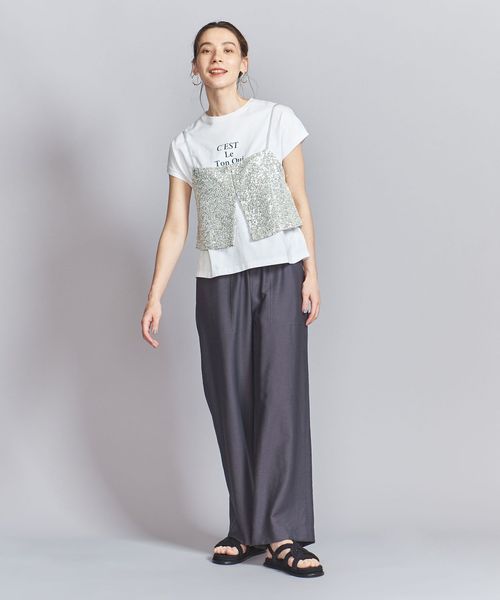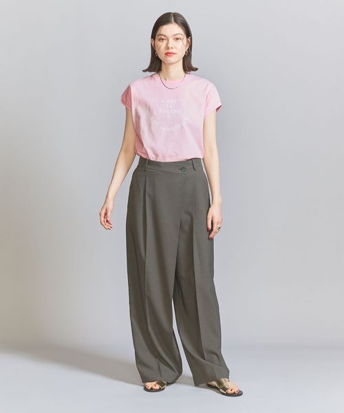 ゆったりとしたワイドシルエットに、肩まで隠れるコンパクトなフレンチスリーブ型ボディで、適度な抜け感を漂わせる一着。