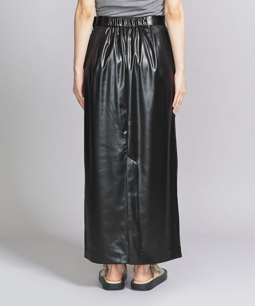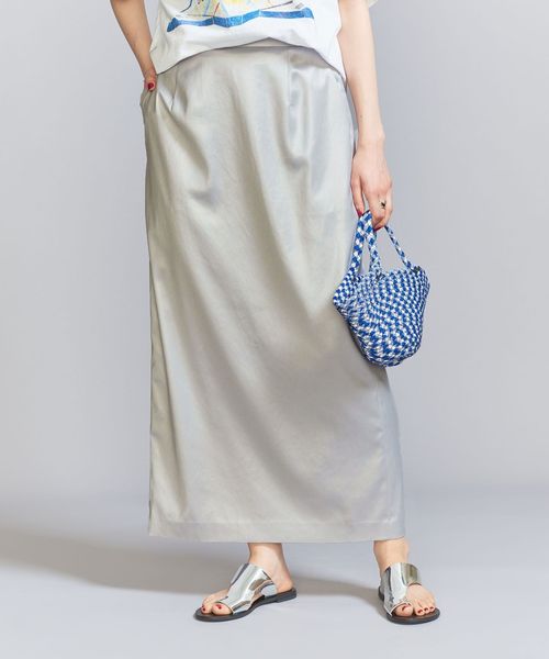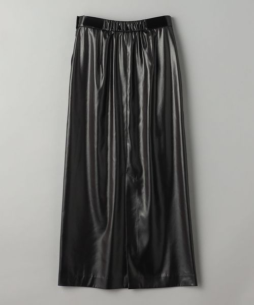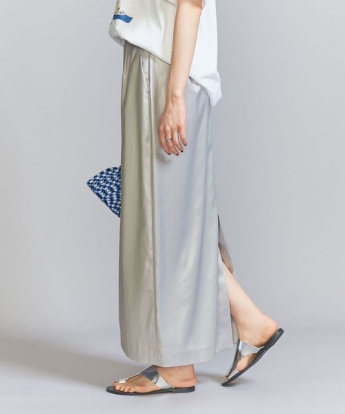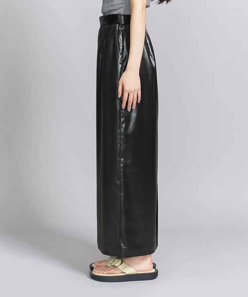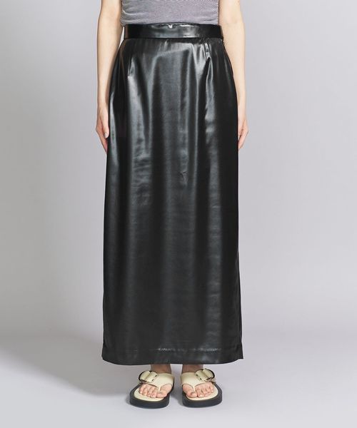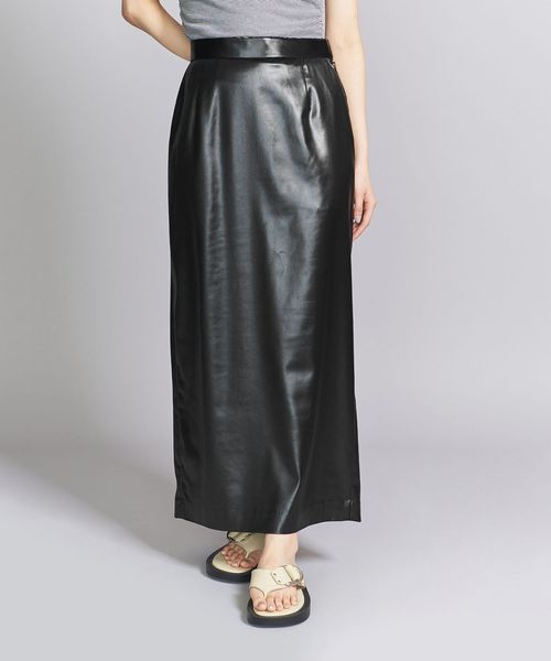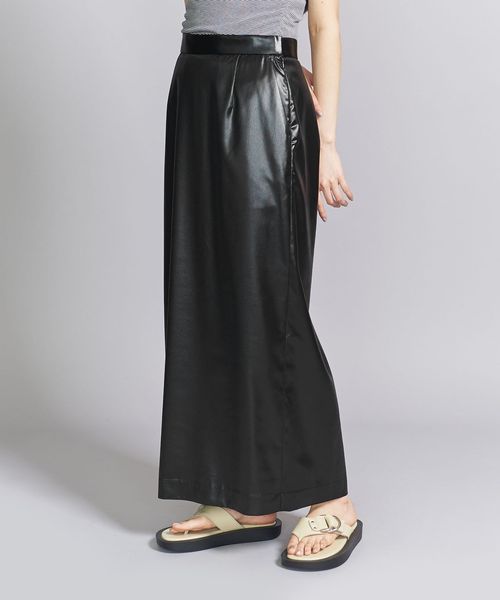 ロング&リーンなシルエットで品よく見せる艶ボトム