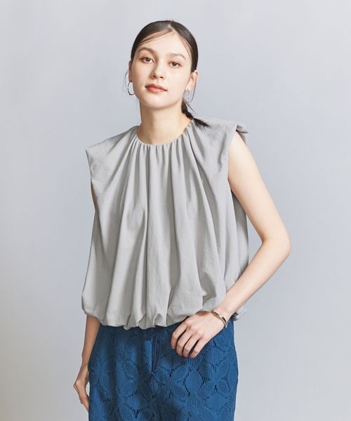 コットン ギャザーバルーン フレンチスリーブ トップス