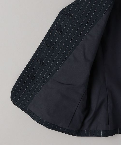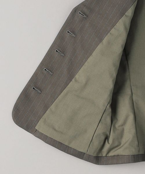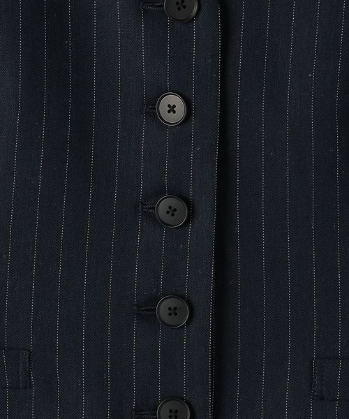 麻レーヨンコットンブレンドのチョークストライプ柄生地を使用。