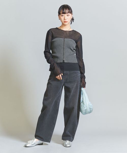 プリントTシャツや旬のシアートップスとのレイヤードスタイルがおすすめ。