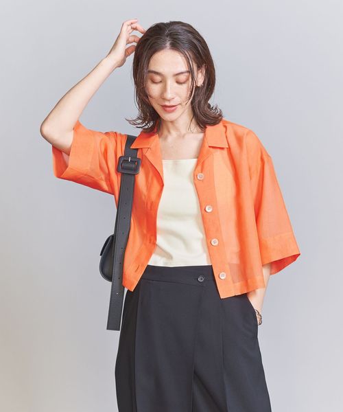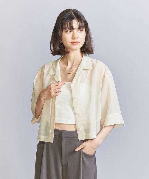 透け感&ショート丈でトレンドスタイルを楽しめるシアーシャツ。